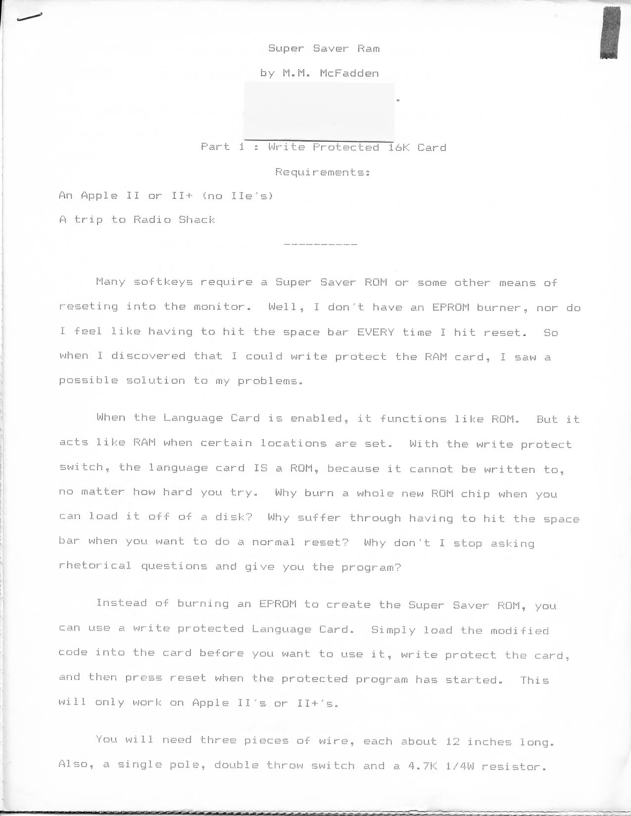 It was possible to purchase a "Super Saver ROM" chip that made getting into games easier. The replacement ROM provided a different way of handling the "reset" key that side-stepped the usual copy protection tricks. My brother hacked our 16K "language card" to add a write-protect switch, which allowed us to do essentially the same thing without replacing any chips. (This limited cracking attempts to games that fit in the main 48K of memory, but nearly all heavily-protected games fell into this category.) I submitted an article describing how the hack should be performed, but it was rejected by the editors (scans of the submission here: 1 2 3 4 5 6).