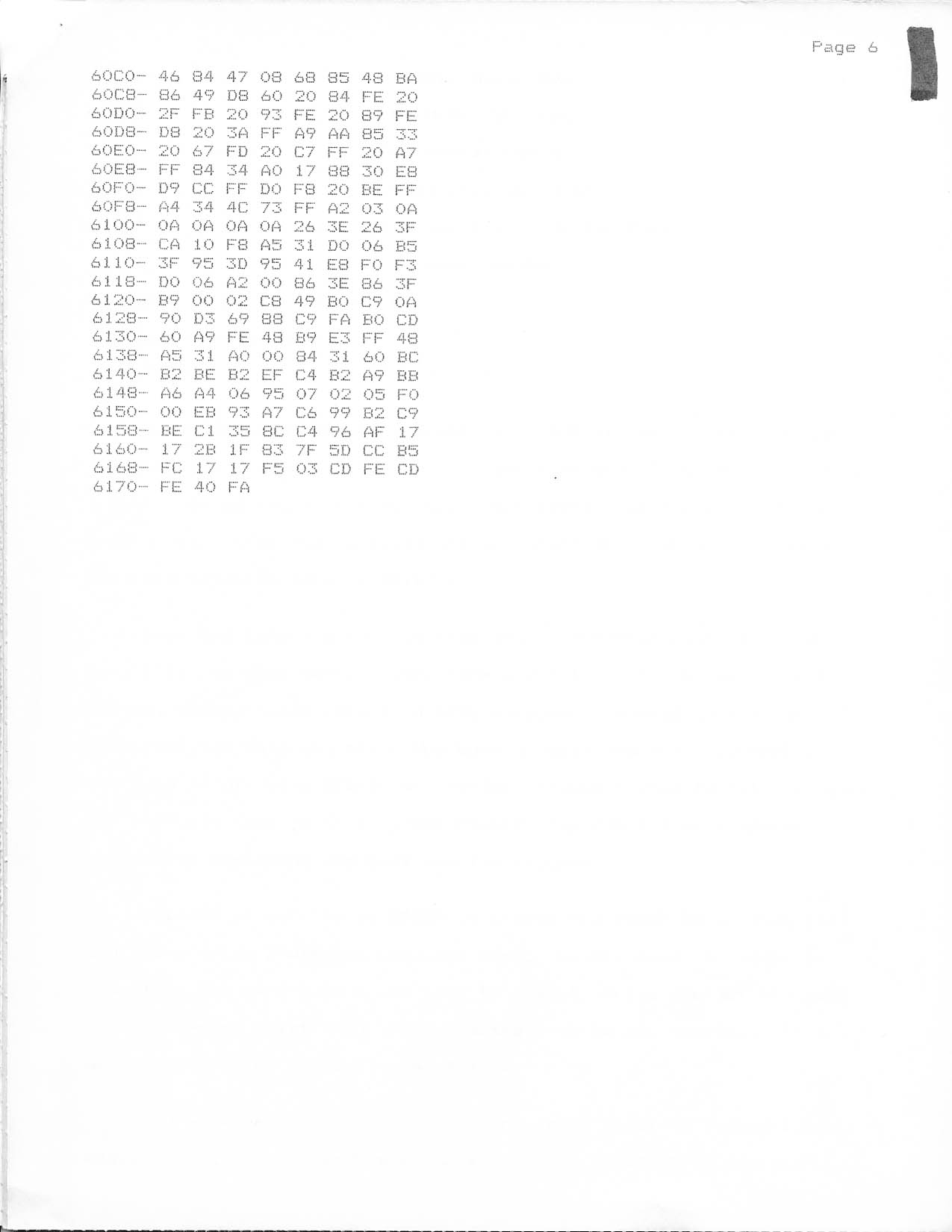 Once I could break into the already-loaded game, finding the copy protection checks was straightforward. I submitted a rather convoluted article to COMPUTIST magazine, but it was rejected by the editors (scans here: 1 2 3 4 5 6 7 8 9). When I got a copy of Frogger, and discovered that it used the same scheme, I successfully applied the same techniques to crack it. I submitted a somewhat shorter article for Frogger, which was accepted and published in COMPUTIST issue #41 in March 1987. I did a nicer crack of the game for my own use, but there was something poetic about breaking the dreaded Spiradisc with a 4-byte change, so I left it as-is.