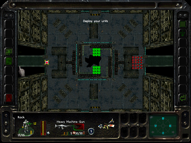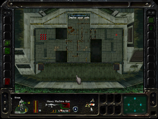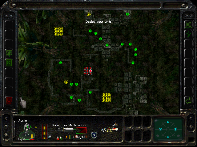 Positioning: deploy in a square. I put the assault rifles in the north spots.