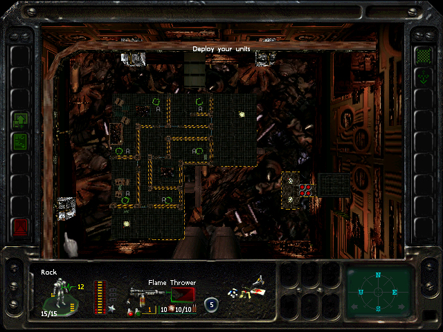 We need a unit with a Jet Pack and Explosion Pack, and another with good defensive capabilities (and maybe a Jet Pack as well), and neither unit can have a Cooler already. That pretty much narrows it down to Ramone and Bratt. Ramone will kill massed spiders with his Multi-Target Destroyer, then rush in and destroy the spawner while Bratt provides cover. We can use Steele a little, mostly while dealing with the pre-positioned Dec'Ther.