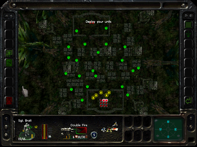 Turn 1: we're going to capture the Gore'Coo to the south, paralyze one Bea'Coo near it, and kill the other one. Ramone and Austin will handle that, assisted by Bratt if necessary (Gore'Coo can be tough).