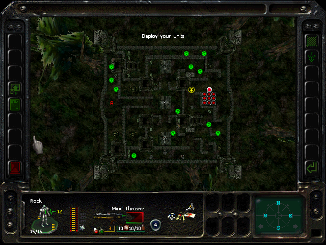 Turn 2: move the Gore'Coo northeast and defend. Make sure he has good firing lines toward the Tr'Yn; he will kill all the Dec'Ther. Heal him up in case a Gore'Coo takes a shot at him.